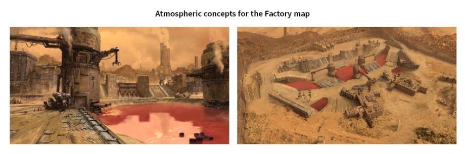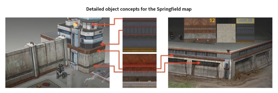 El siguiente paso sería crear conceptos y borradores ambientales. En el nuevo sistema de producción para la remasterización de mapas, hemos encontrado necesario trabajar a fondo cada detalle cuando se trata del concepto.