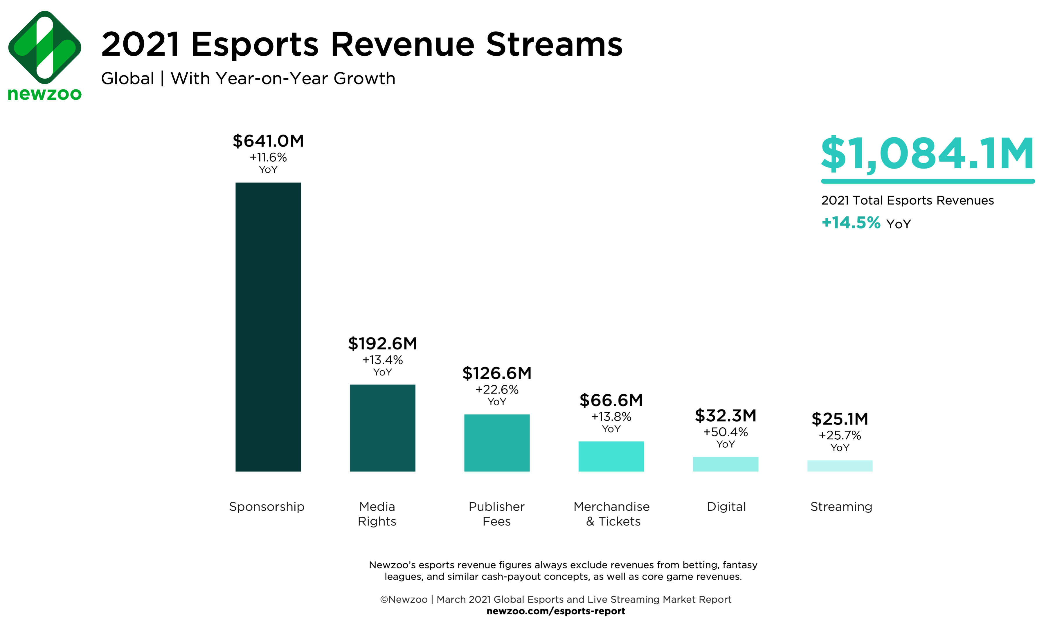 El fuerte compromiso del mercado se ha filtrado en los ingresos, que crecieron a pesar de que los eventos en persona estuvieron ausentes. Los eSports generarán más de 1.000 millones de dólares este año, impulsados principalmente por los ingresos por patrocinio.