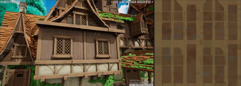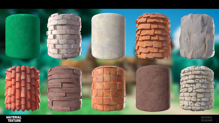 La compañía anterior quería hacer un juego similar al estilo Ghibli. Me interesaron mucho porque me han gustado los dibujos animados de Hayao Miyazaki desde que era un niño. Esta escena fue realizada por mi amigo y yo. Todos los materiales fueron realizados por mí en Substance 3D Designer.