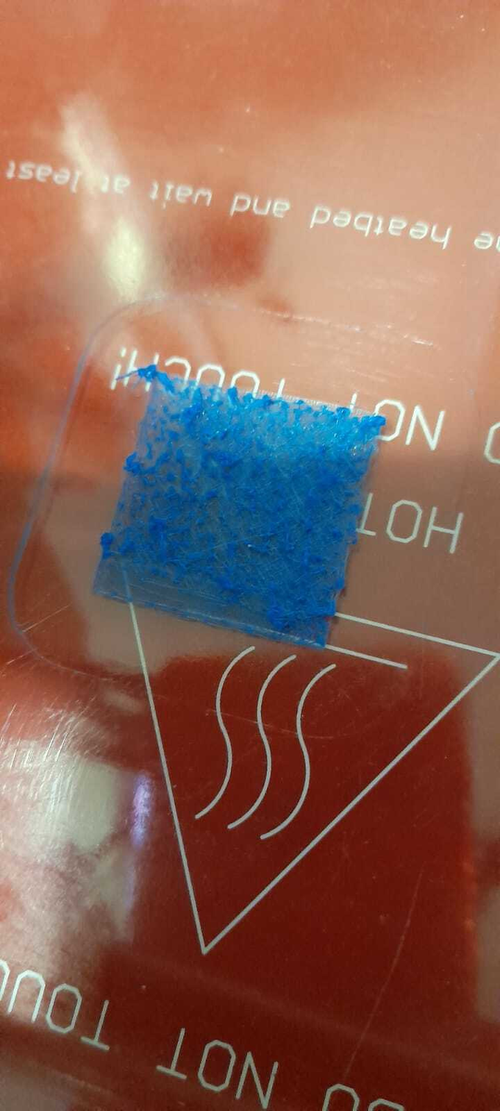 Queda una plasta de unos 2 mm, la boca del extrusor no sube (luego al retraerse por terminar tarea sube sin problema), se pasa la mitad del trabajo imprimiendo una y otra vez sobre el mismo sitio, derritiendo el PLA que ya había depositado en capas anteriores, y montando por ello una plasta considerable.