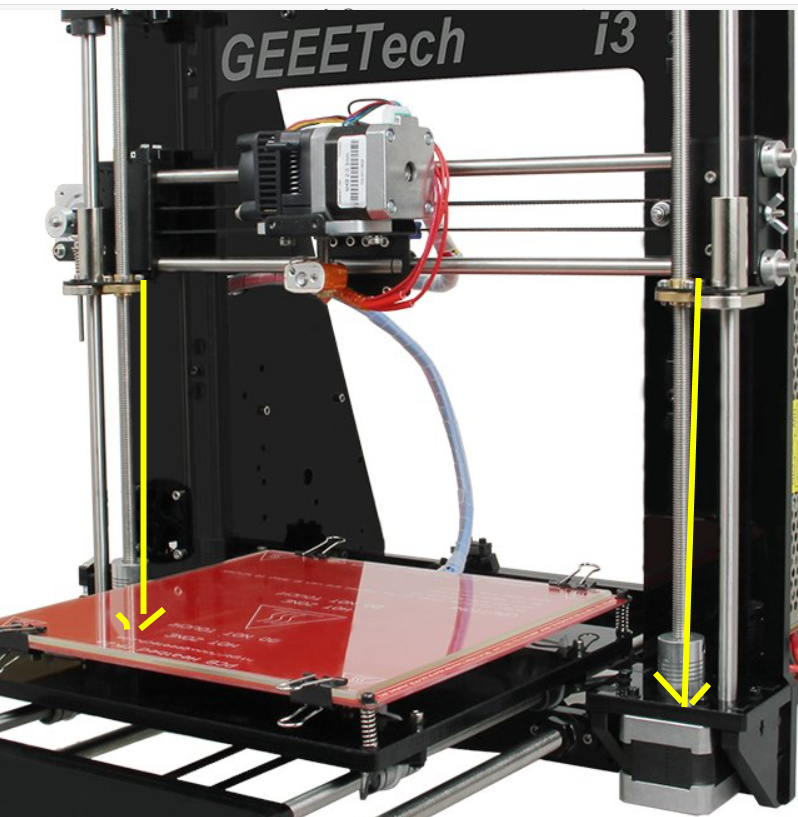 Subes la impresora desde el LCD una cantidad de milímetros o cm. y luego con el metro miras si la distancia es la misma en los dos lados.