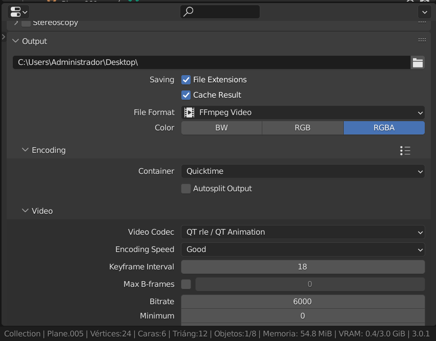 inigoheYa he probado con el formato QuickTime ( .mov) y lo consigo, pero con WebM (compresion FFmpeg, RGBA activado, film transparency activado...etc), no lo hace. Es normal que esto suceda?.