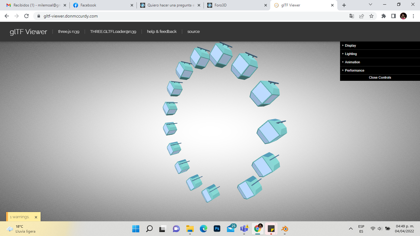 En vista previa funciona perfecto, el lio viene cuando voy a exportar el GLB, las canastas no giran como debe ser, es decir quedan sujetas a la estructura al parecer.