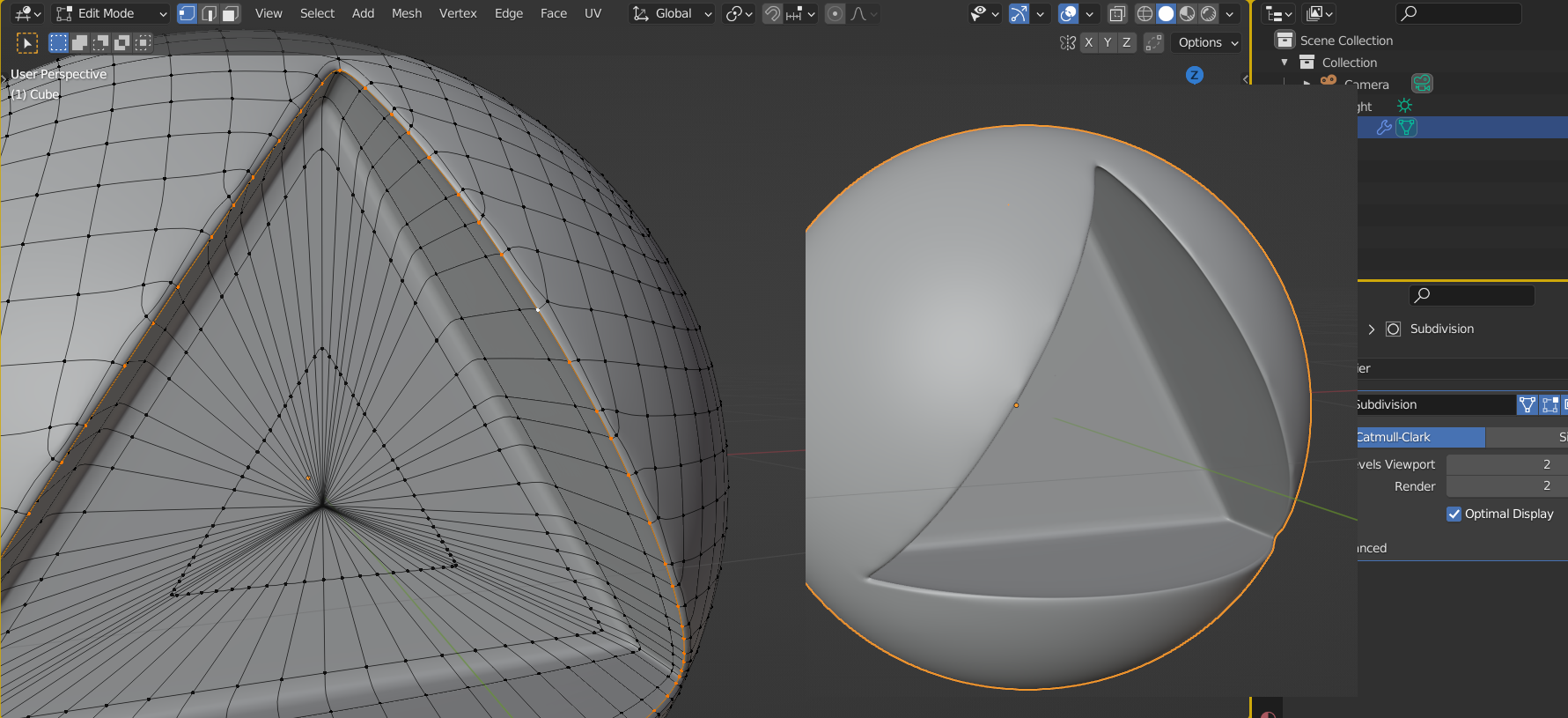 1-Creo y subdivido 3 veces un cubo:
