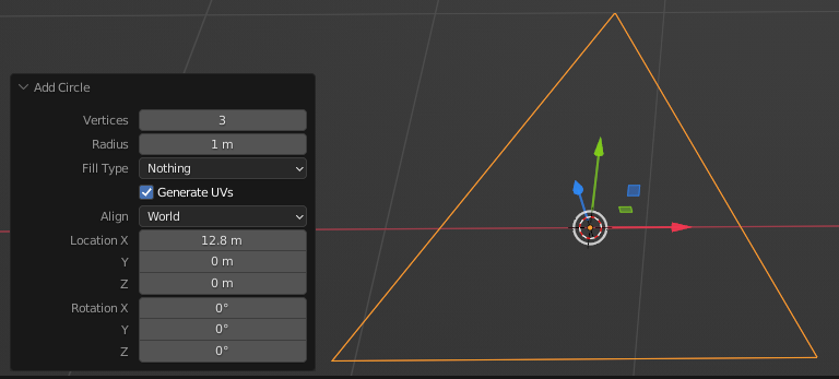 3- Creo un circulo y lo configuro para que sea solo de 3 vértices para obtener un triangulo.