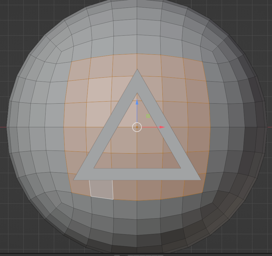 5-Roto el triángulo 90 grados en el eje de las X, posiciono el triángulo encima de la esfera y seguidamente selecciono las caras de la esfera que el triángulo está ocupando.
