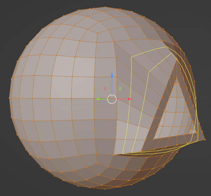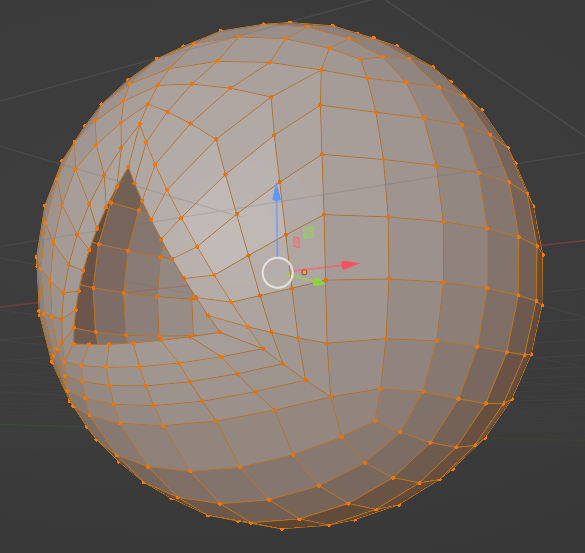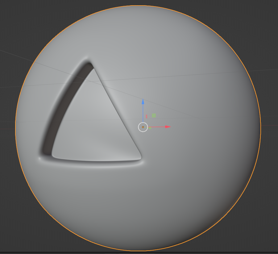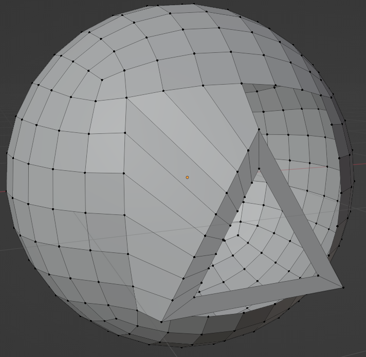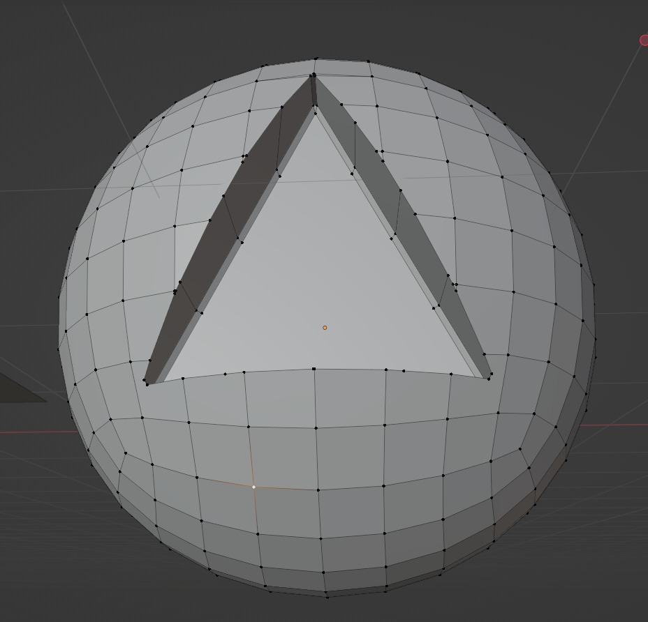 Ctrl + J junto los 2 objetos en uno solo y luego corto el triangulo para hacer encajar los vértices de la esfera con el triángulo.