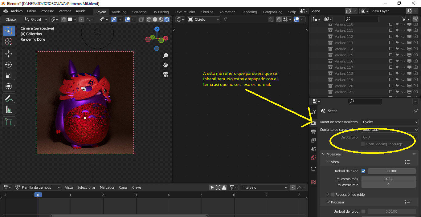 Mi pc antes renderiza una foto en uno 5 minutos y medio más o menos con 128 samples, Ahora con la tarjeta grafica no me cambia ese tiempo se tarda lo mismo!