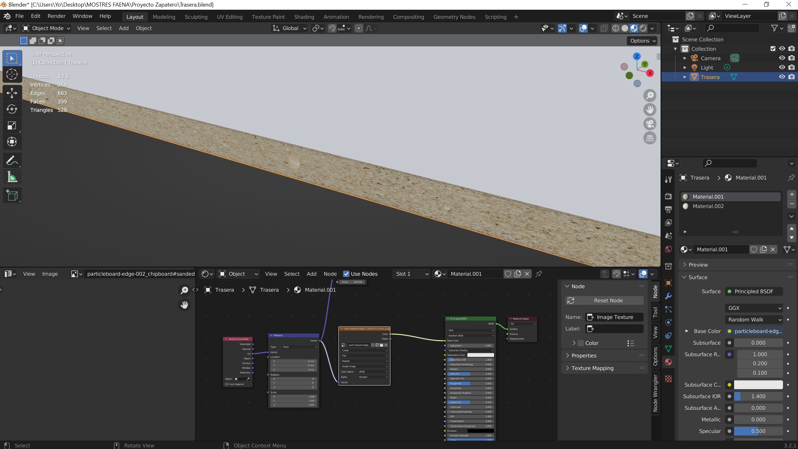 Sobre algunas facetas la textura se proyecta estirada. Es como si algunas facetas no se desplegasen correctamente. Incluso las he borrado y reconstruido una a una, pero no consigo solucionar el problema. También he recalculado normales, he rehecho los desplegados de varias formas.