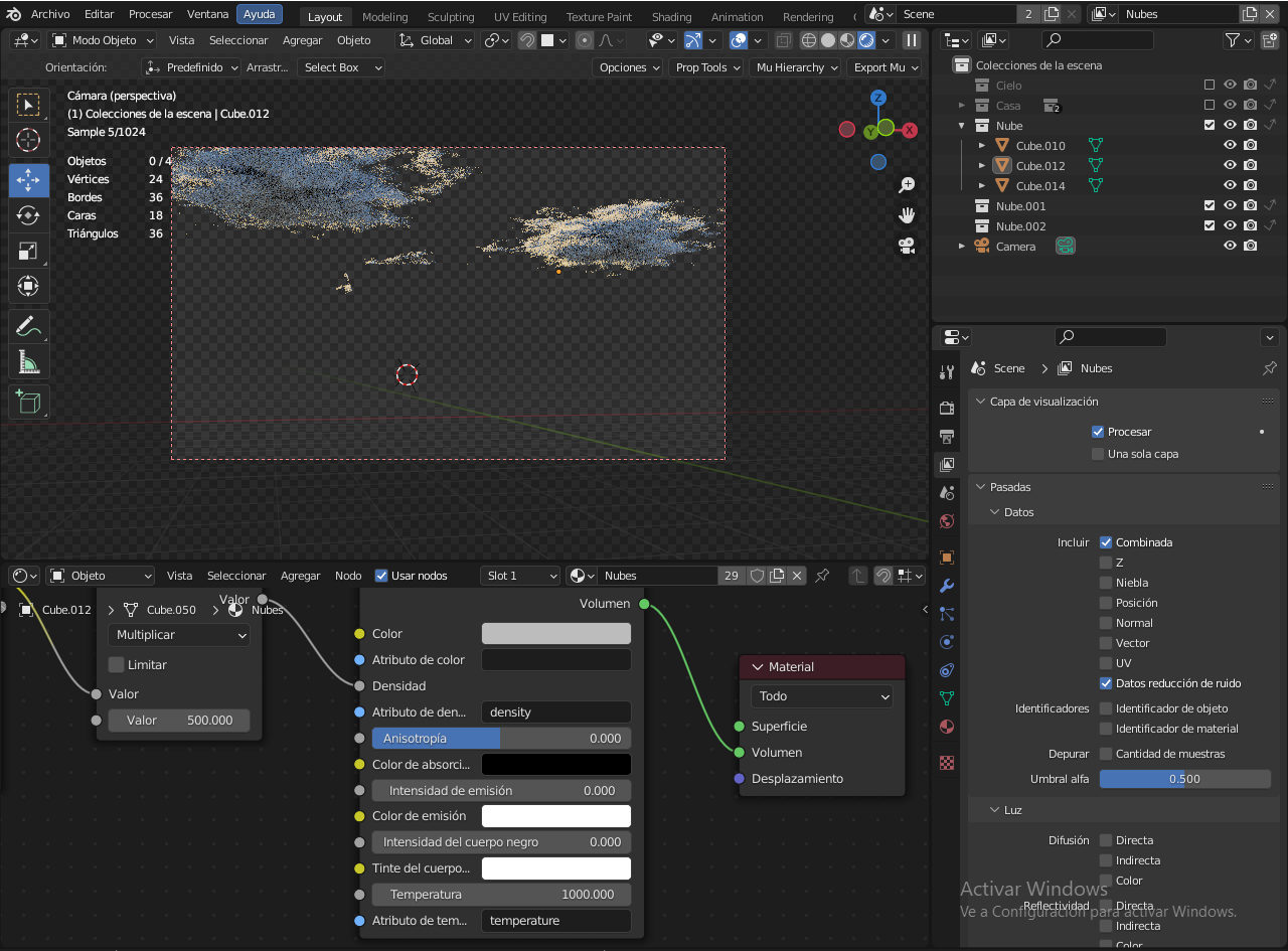 Tengo un problema al renderizar unas nubes, no sé cómo explicarlo pero les dejo una imagen.