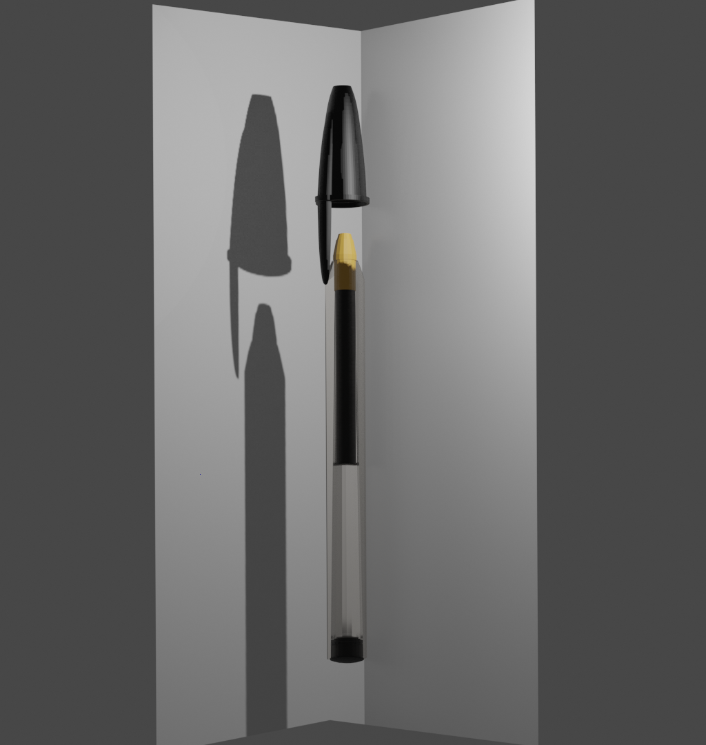 Quería preguntar cómo podría mejorar en realismo este lápiz, ya sea a través de texturas, materiales, configuración camera, fondo. Esto debido a que soy novato y es casi uno de los primeros modelos hechos.