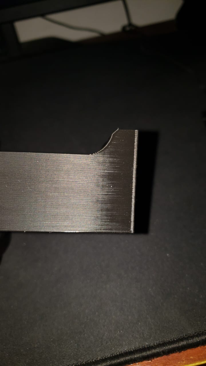 Hola, estoy teniendo un problema en mi Ender 3 v2, no hice ningun cambio, usé mismos parámetros y mismo filamento (varios), me sucede que en las piezas se hacen como unas sombras más brillantes en las partes que dobla la pieza. Ya me fije el fan de capa (lo he limpiado y tira aire bien).