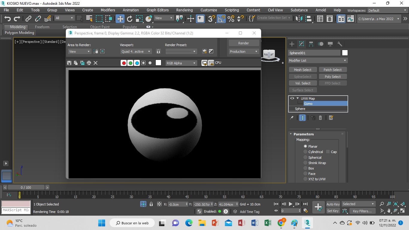 Hice un Sphera y le he aplicado un Bitmap, lo he ajustado aplicándole un UVW quedo perfectamente donde quería pero, a la hora de darle un render me aparece desfasado y de diferente tamaño.