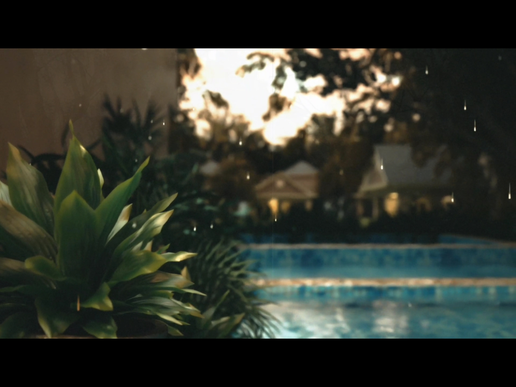 Hago un apartado aquí para comentar acerca de algunos detalles del vídeo, la escena de las piletas con lluvia posee animación de las plantas al ser impactada sus hojas por las gotas de lluvia.