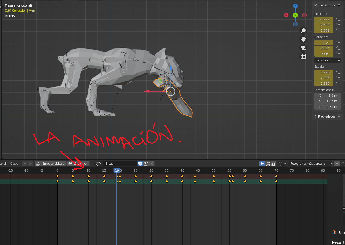 Hola qué tal, soy nuevo en esto de animación y modelado en Blender. Verán, tengo un brazo con una animación sin rig y un perro con una animación con rig. Cuando exporto con los settings que se ven en la imagen (he probado también destildando "aplicar transformaciones") e importo el brazo en Unity se ve de esta manera.