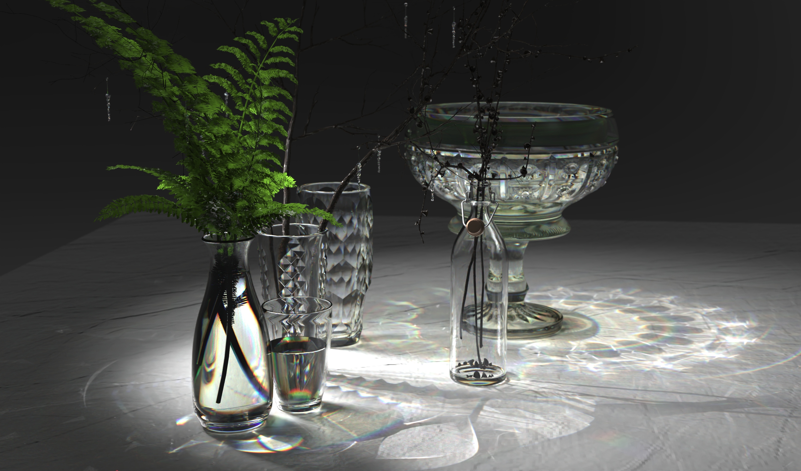 Hola Carolina, siempre consigues unos resultados espectaculares minimizando el esfuerzo de la máquina. En este trabajo de pruebas lo has vuelto a conseguir, los resultados son buenos y encima trabajando en tiempo real. Muy buenos reflejos ensalzados por esos colores que inundan la escena, haciendo que te fijes más en las cáusticas que en los mismos objetos. Enhorabuena.