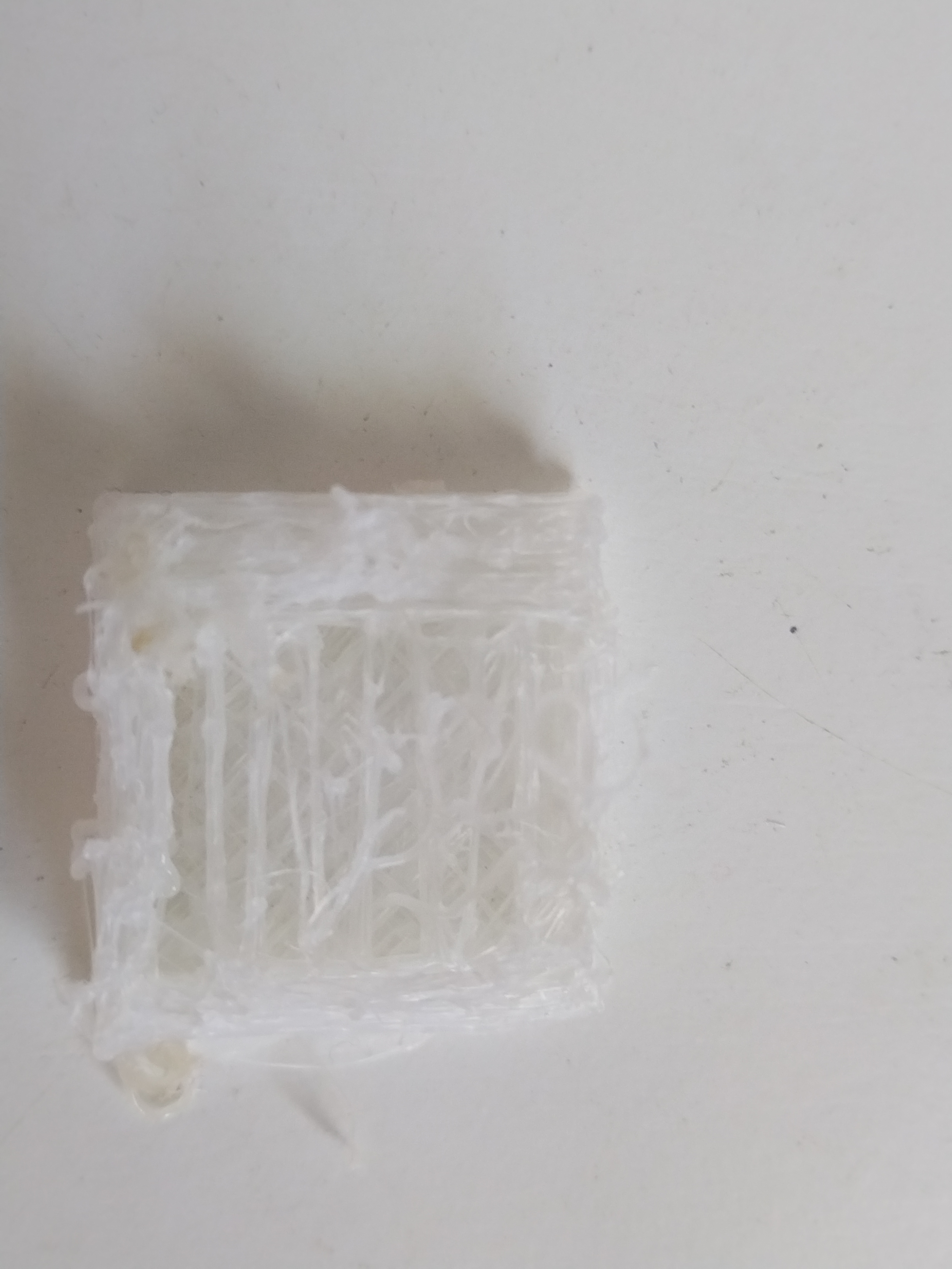 Probé la impresor para hacer un cubo, pero cuando imprimió aparece estos hilos, veo que el extrusor (la rueda metálica específicamente) movió el filamento para que quedara