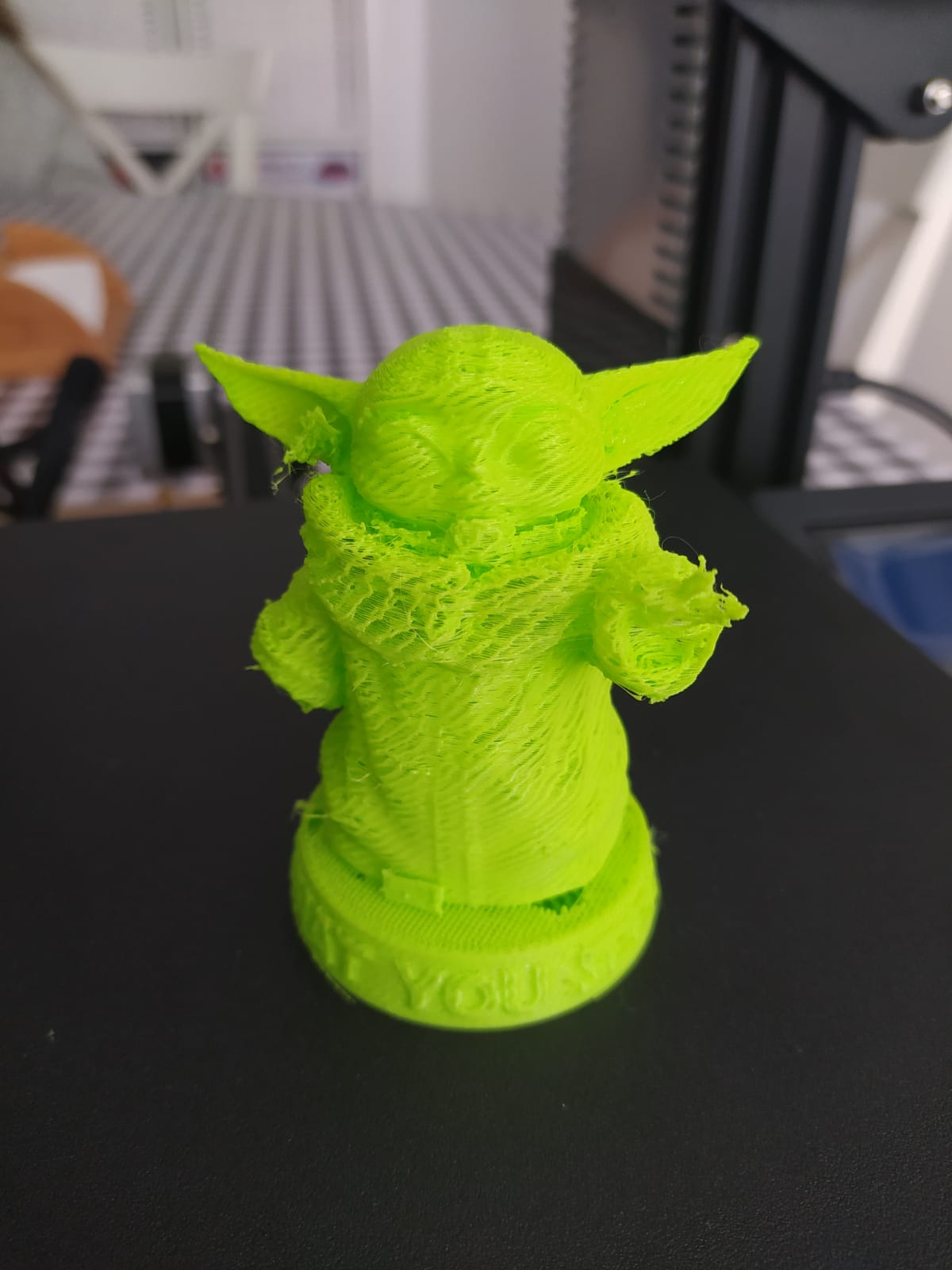 Posteriormente, imprimí un protector para el filamento, pero el resultado fue desastroso y por último una pirámide de calibración pero bastante mal. La primera pieza fue un gato y un benchy con el filamento que viene de serie. Luego han sido, un baby yoda, un cubo de calibración, un protector para el filamento y una pirámide de calibración. Saludos.