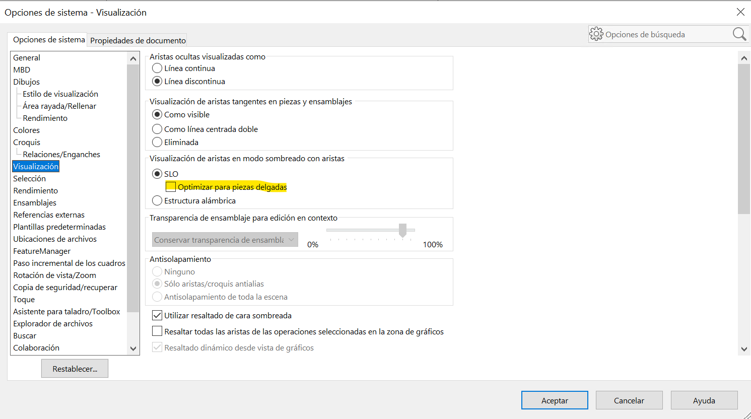 En cambio, si selecciono la opción de sombreado o la de aristas la pieza se visualiza correctamente ¿Cuál puede ser el problema? Mil gracias por adelantado.