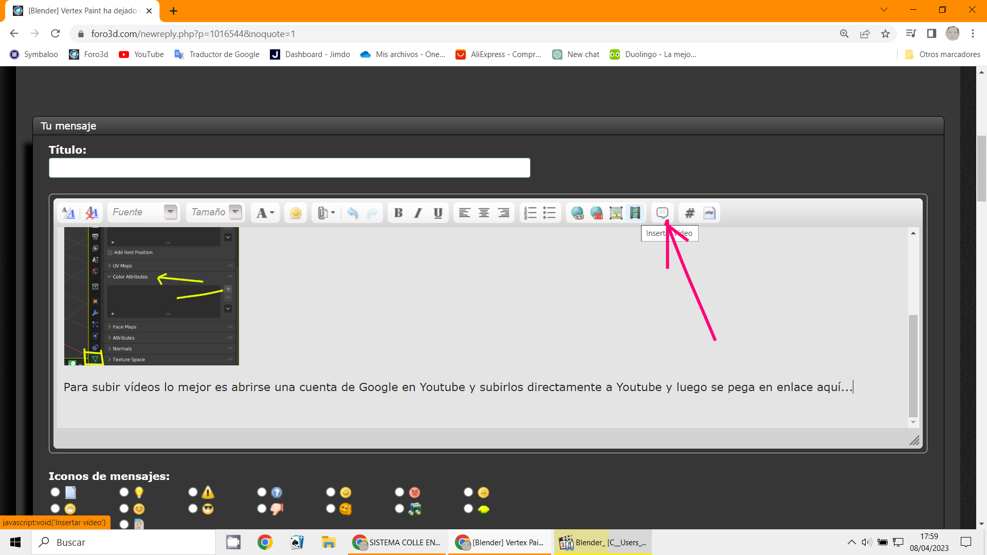 Para subir vídeos lo mejor es abrirse una cuenta de Google en Youtube y subirlos directamente a Youtube y luego se pega en enlace aquí...