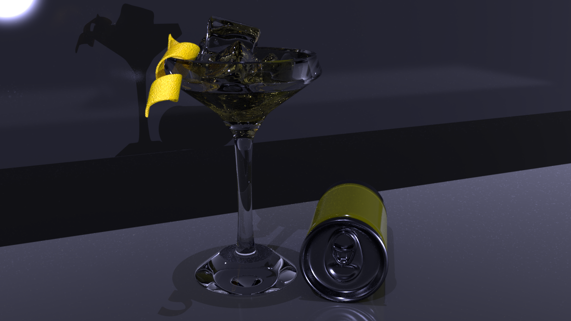 La copa, el líquido, todo eso lo veo genial, el reflejo de la lata sobre la mesa es muy bueno. Buen trabajo amigo.