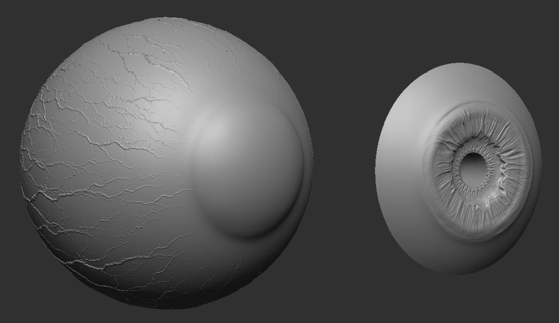 Dado que todos los detalles fueron esculpidos a mano en lugar de utilizar escaneos, creé mi propio patrón de poros humanos y lo guardé como un alfa para poder colocarlos de forma manual. Para los detalles más finos, utilicé una combinación de alfas ajustados en ZBrush junto con diferentes pinceles. Los ojos se trataron de manera independiente, con una geometría separada para el iris que incluía detalles esculpidos, así como otra geometría para el globo ocular.