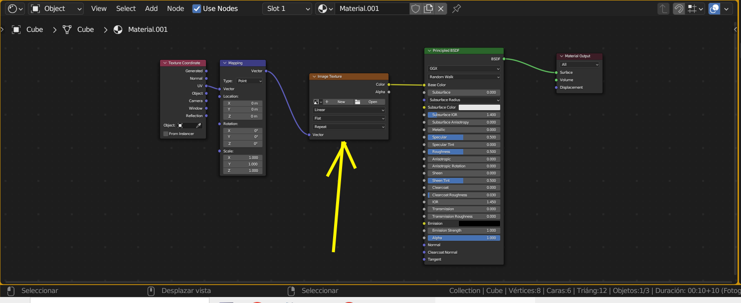 Lo más sencillo es ir al nodo de "Image Texture", borrarlo y poner uno nuevo y buscar la imagen en la carpeta donde la tengas.