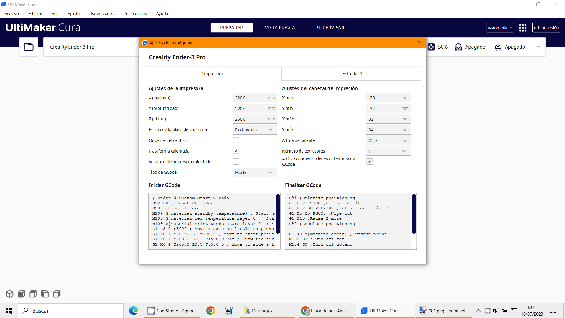 En el CURA... ¿que modelo de impresora has puesto? ¿Son las medidas las mismas que la de tu impresora?