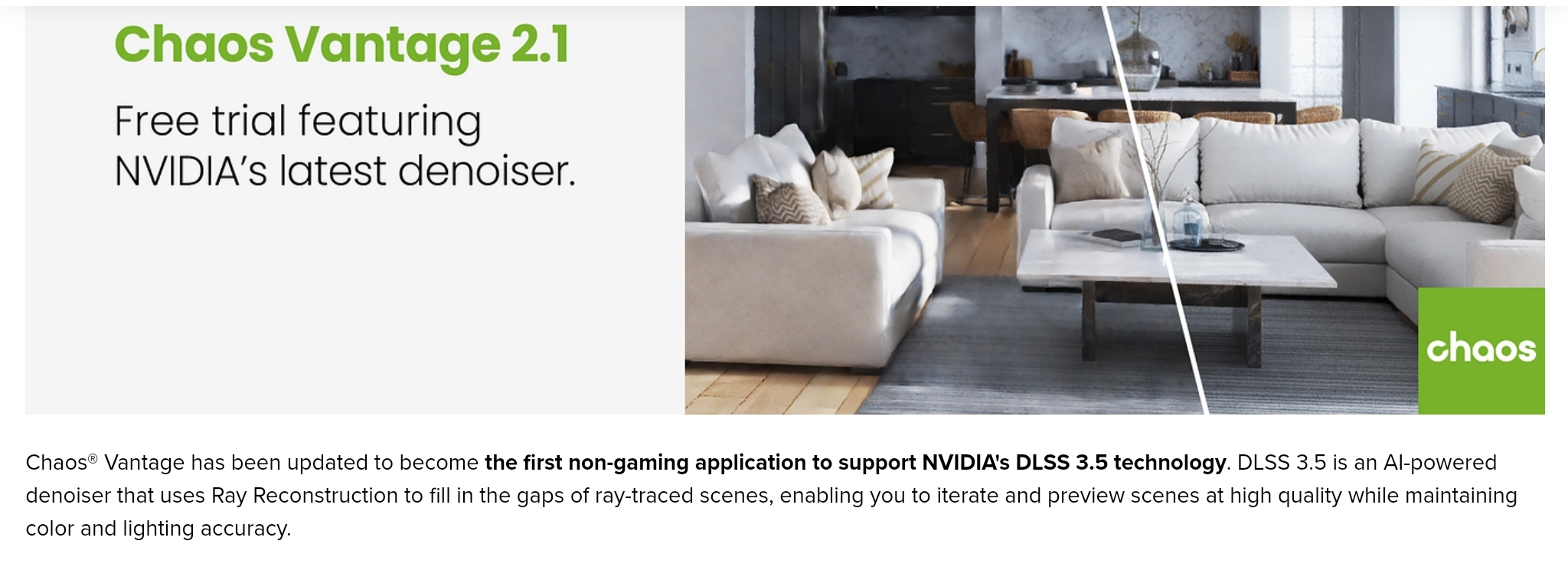 Vantage es la única aplicación no-juego (non-gaming app) que utiliza esta técnica de Ray Reconstruction (tomado de otro sitio). Posteo el enlace (en inglés, usar traductor de página): https://www.cgarchitect.com/features/articles/d7df3feb-.