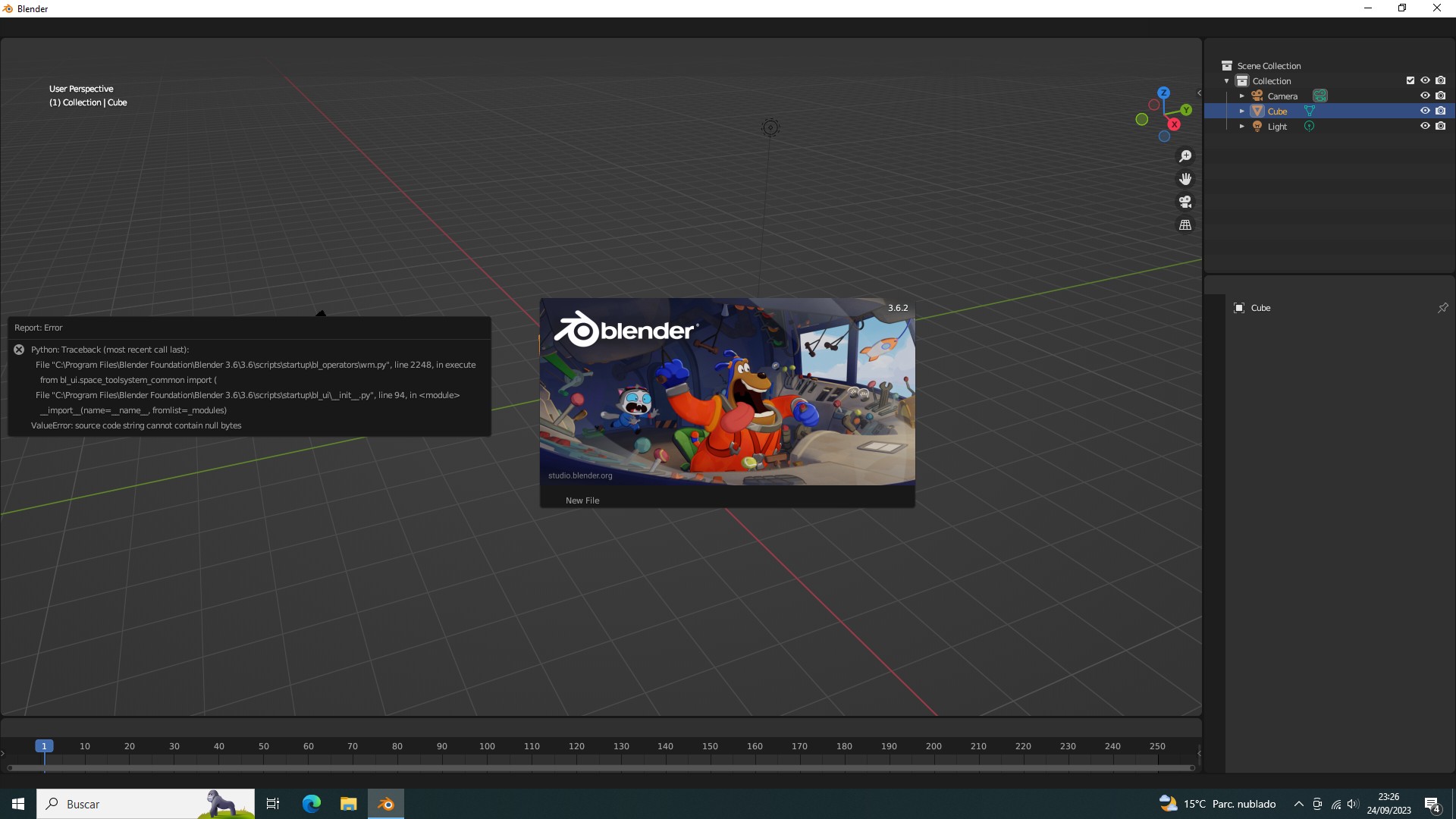 Buenas que tal, miren de repente me sale esto cuando inicio Blender 3.6, y no funciona, no se termina de iniciar bien, y intento borrar Blender y tampoco deja.