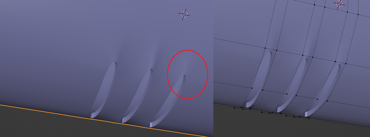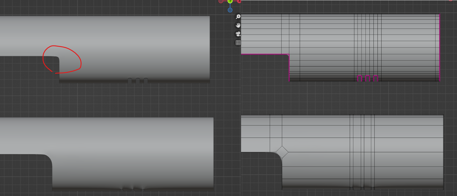 Ahora mismo con el SubSurf no queda bien, se ven muy estirados y queda una parte como muy tensionada creando algún artefacto feo a la vista.
