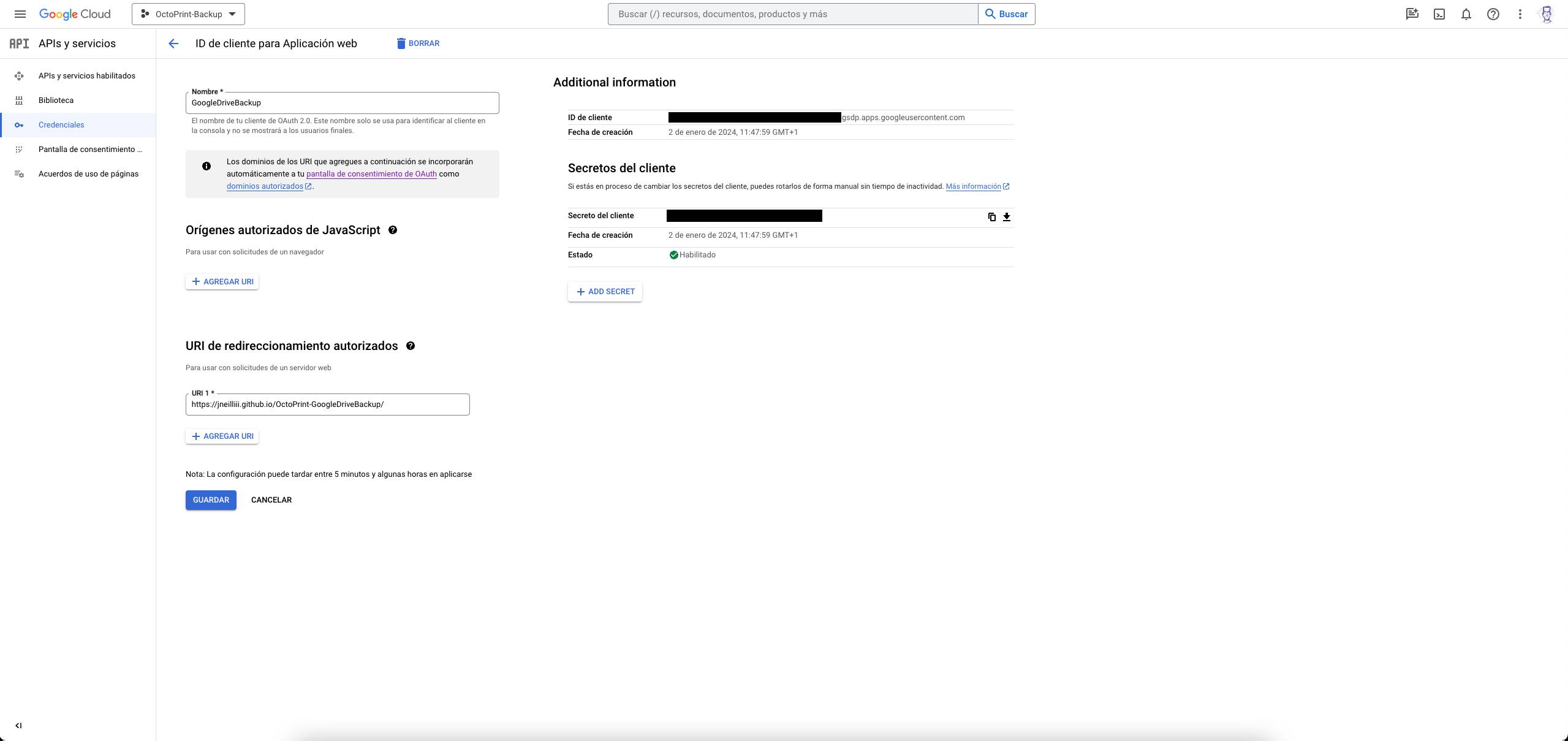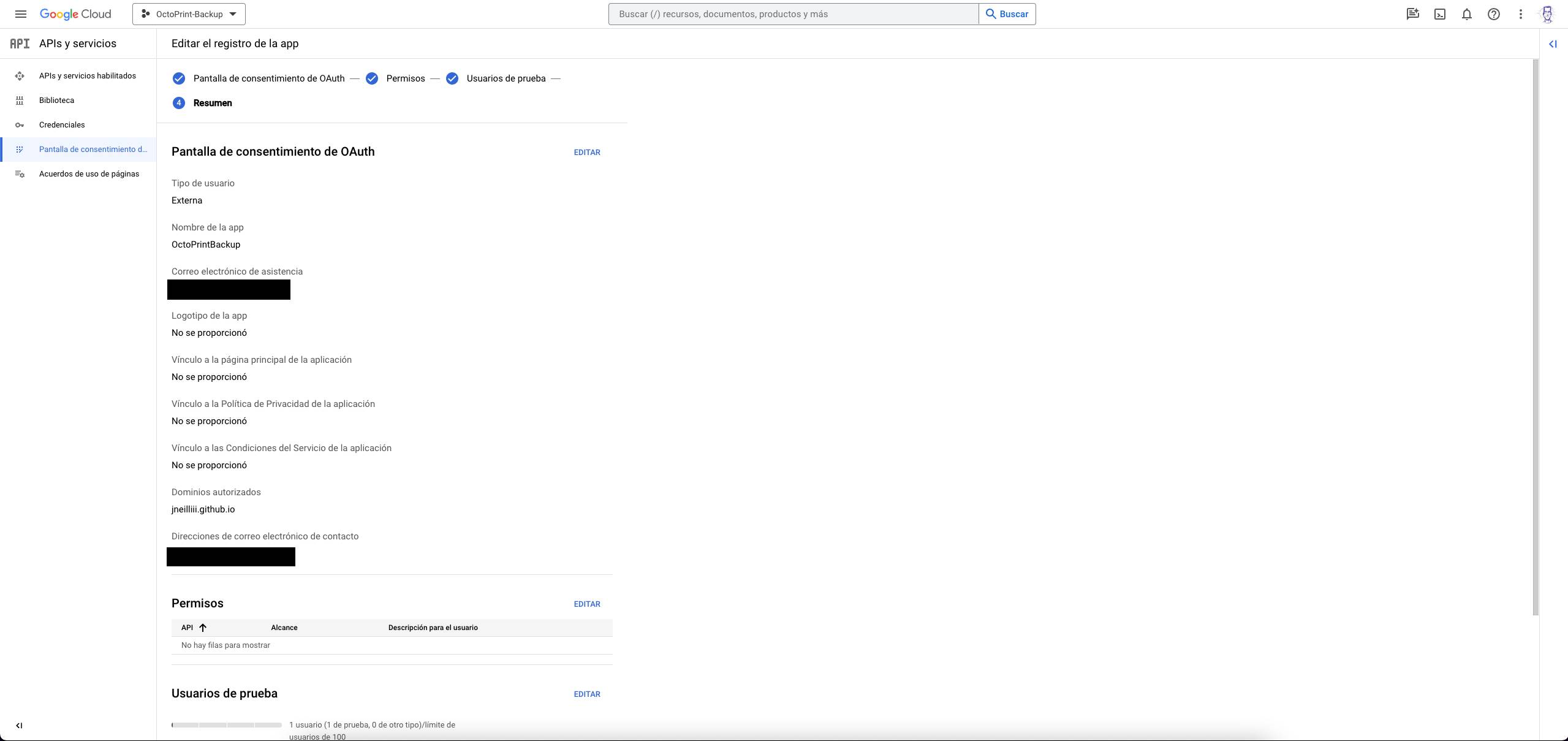 Solución al error 403 FORBIDDEN de Google Drive Backup en OctoPrint