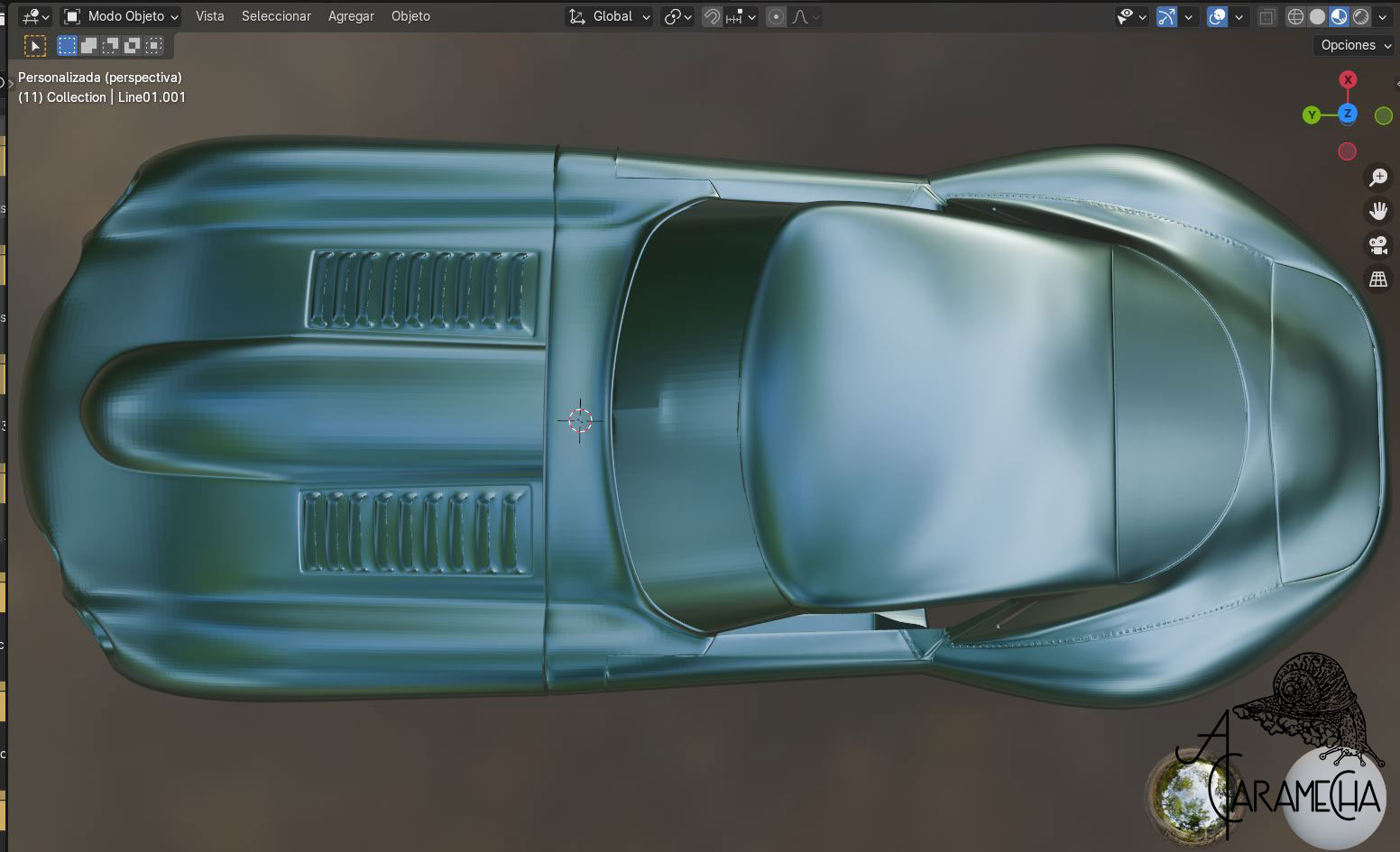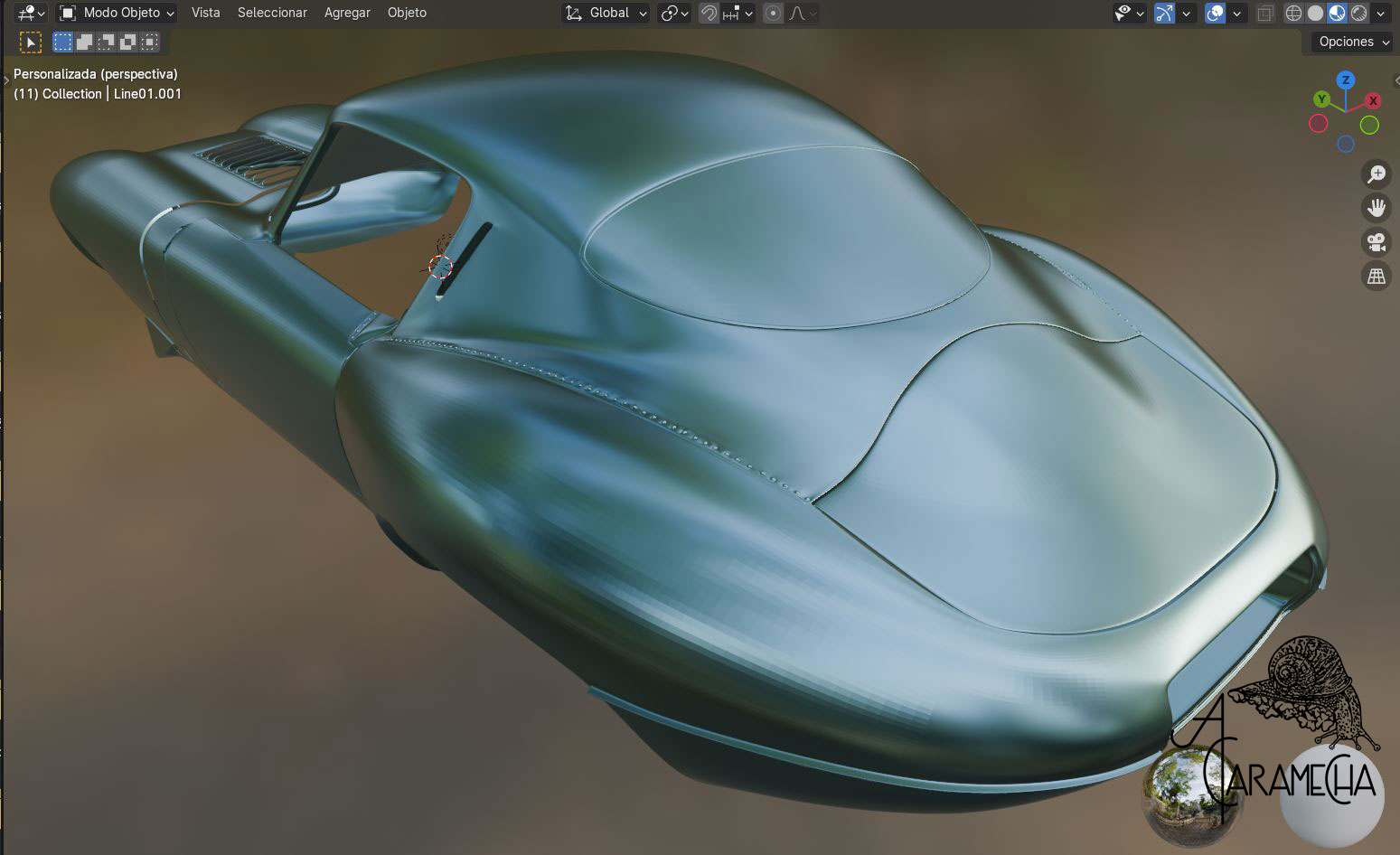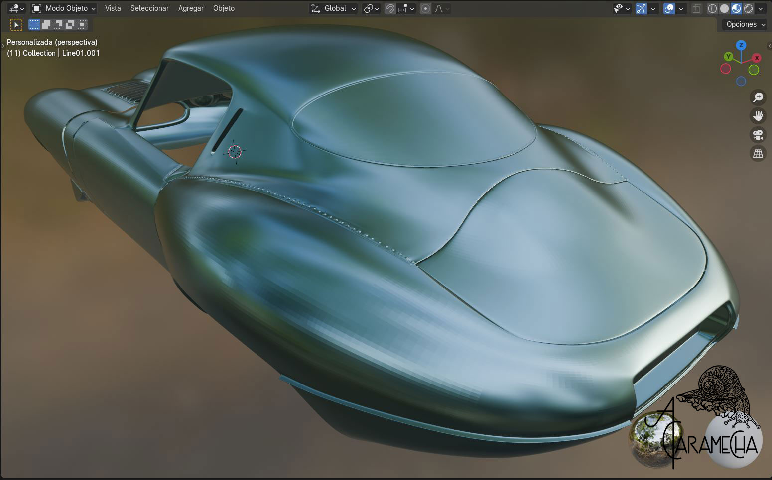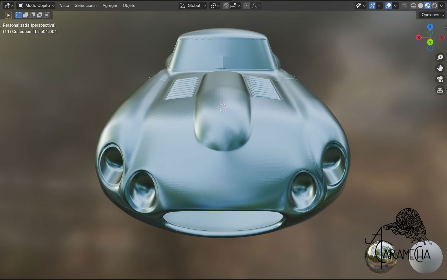 Esta es la malla que tenía en Max, la he importado en .obj. A partir de este punto, intentaré proseguir en Blender. Son capturas de pantalla, ya que empiezo de cero; no hay materiales ni luces... Empezamos.