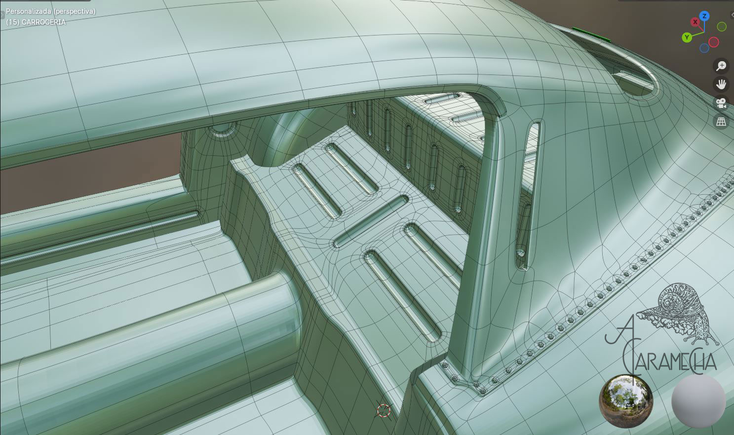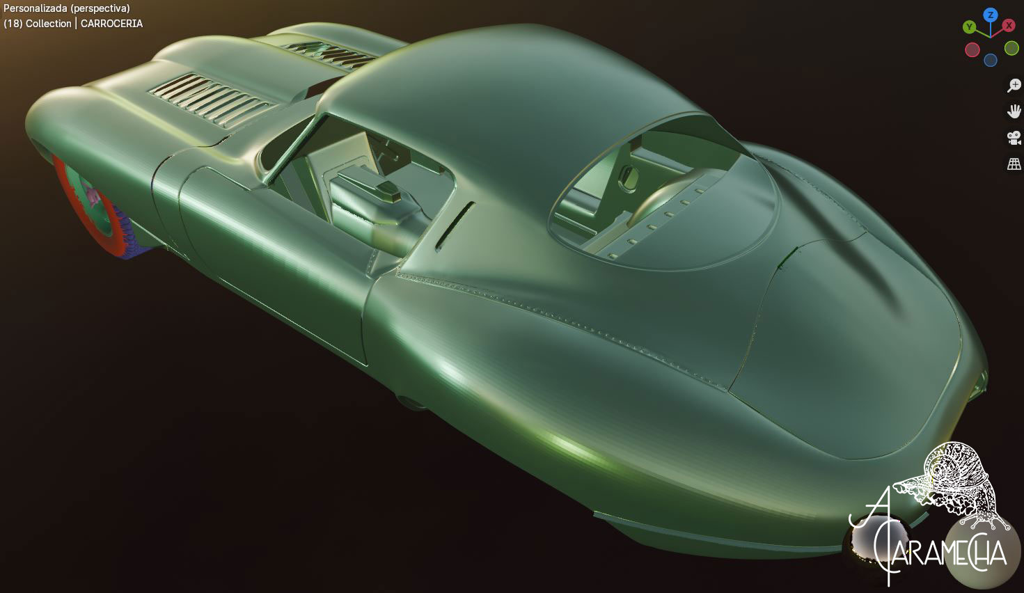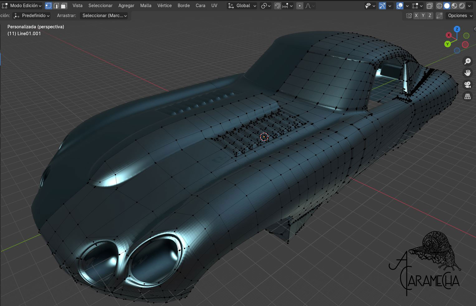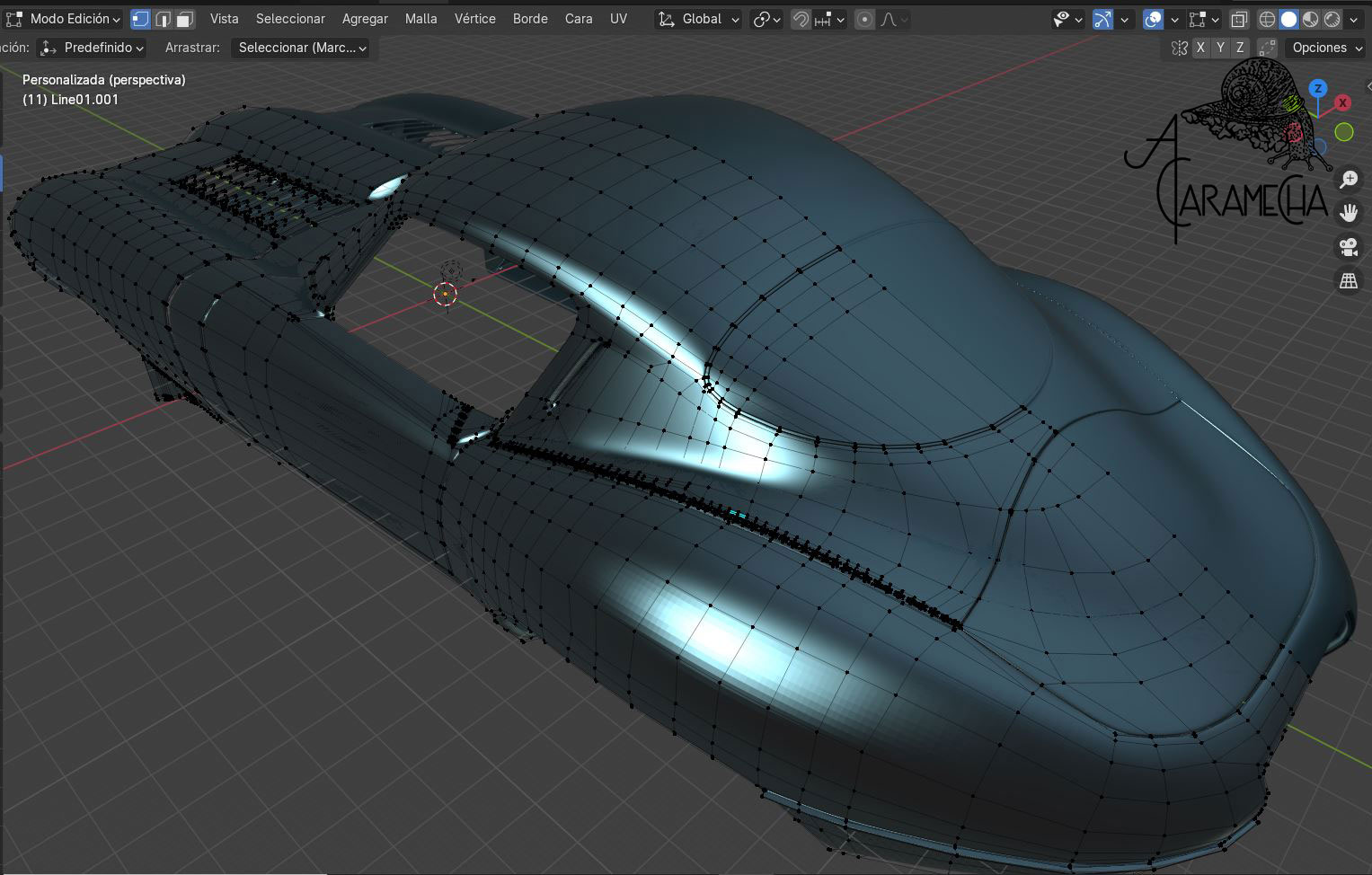 Esta es la malla que tenía en Max, la he importado en .obj. A partir de este punto, intentaré proseguir en Blender. Son capturas de pantalla, ya que empiezo de cero; no hay materiales ni luces... Empezamos.