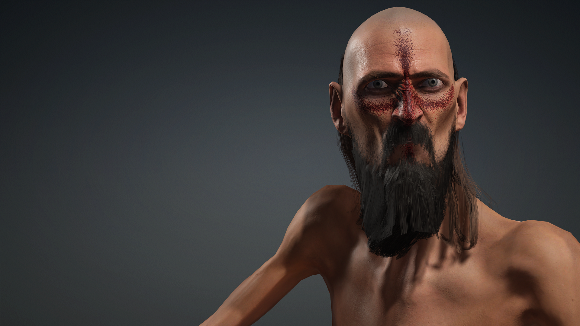 De la primera imagen noto que los hombres están muy poligonales, lo que significa que les falta un poco de subdivisión. En cuanto a la barba, creo que tiene demasiado pelo en la parte central o podría ser más fino.