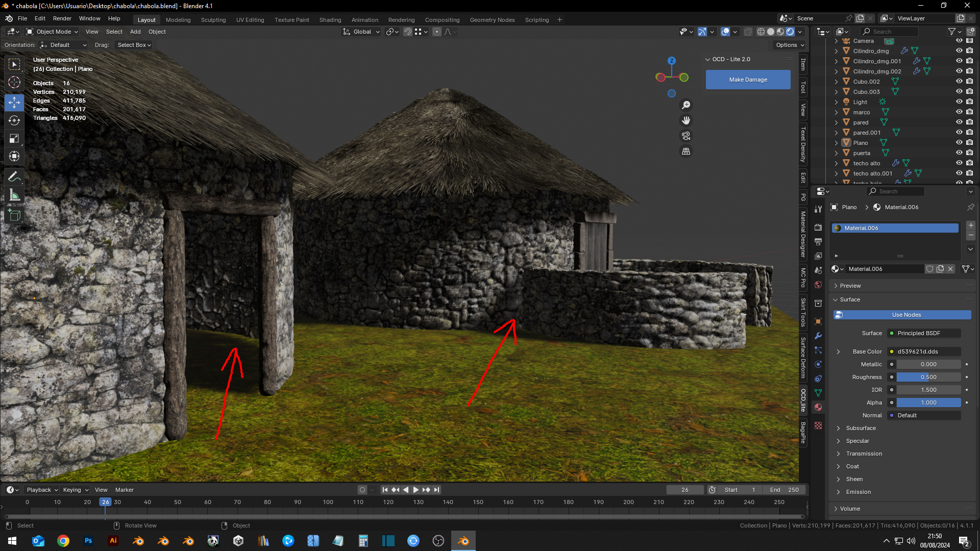 Estoy haciendo un poblado celta que hay cerca de donde vivo y resulta que en el interior de la choza que no tiene puerta hay luz donde no debería haberla.