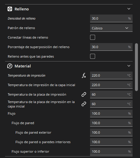 Yo creo que todo eso está bien, los valores mas o menos son los que pide la impresora, a lo mejor la temperatura dependiendo del tipo de material pueda variar.