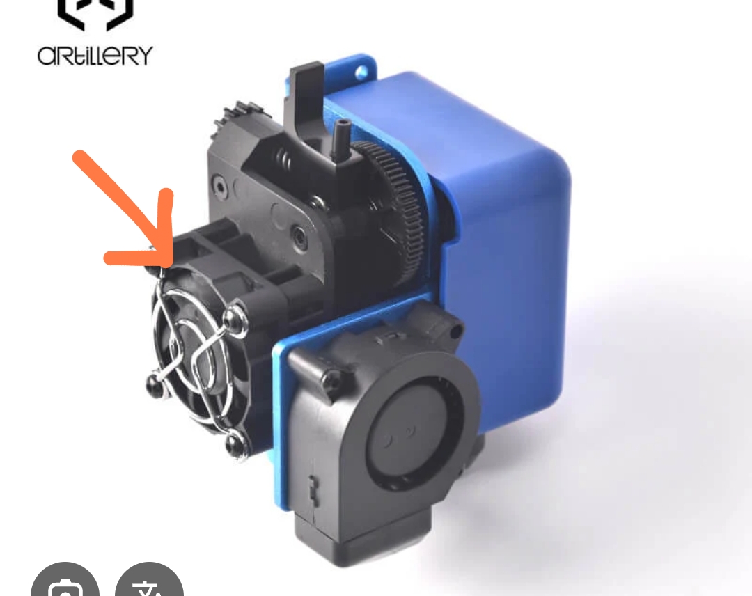 Mira a ver si lo puedes acoplar para que ventile las aletas, esa pieza de aluminio con ranuras o láminas verticales que está justo encima del bloque calefactor (hotend), donde se atornilla el barrel o tubo de titanio en tu caso.