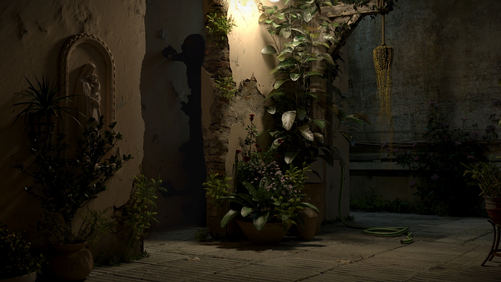Es un espacio imaginado, quizás pueda parecerse a algunos patios internos de casas antiguas que hay por mi ciudad, pero no se trata de ningún lugar en especial.