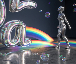 El diseño visual de 2025 viene cargado de brillo. Literalmente. Están dominando las estéticas metálicas y holográficas, con materiales que imitan cromo líquido, superficies plateadas pulidas o reflejos tipo arco iris que cambian según el ángulo. Esta tendencia ya se deja ver en branding de moda, interfaces, campañas futuristas y por supuesto, en visuales 3D y renders estilizados.
