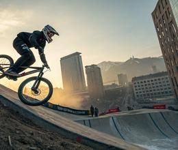 Uno de los principales desafíos fue la creación de escenarios que colapsan mientras los personajes compiten en bicicleta, snowboard y wingsuit. Utilizando Houdini, el equipo generó simulaciones de colisiones, fracturas y efectos de destrucción en tiempo real, sincronizados con la acción de cámara. Cada choque con una estructura generaba fragmentación dinámica y polvo interactivo que reforzaba la energía de la escena.
