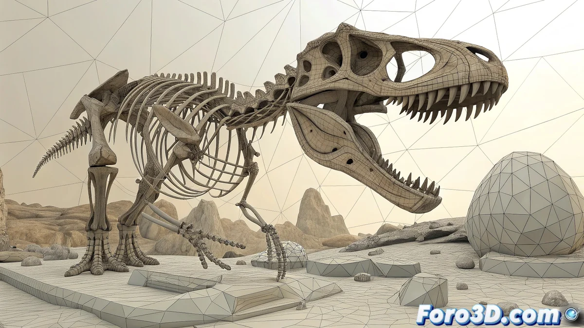 - Exporta la imagen o secuencia final mostrando el fósil completo en un acabado cinematográfico y científico.