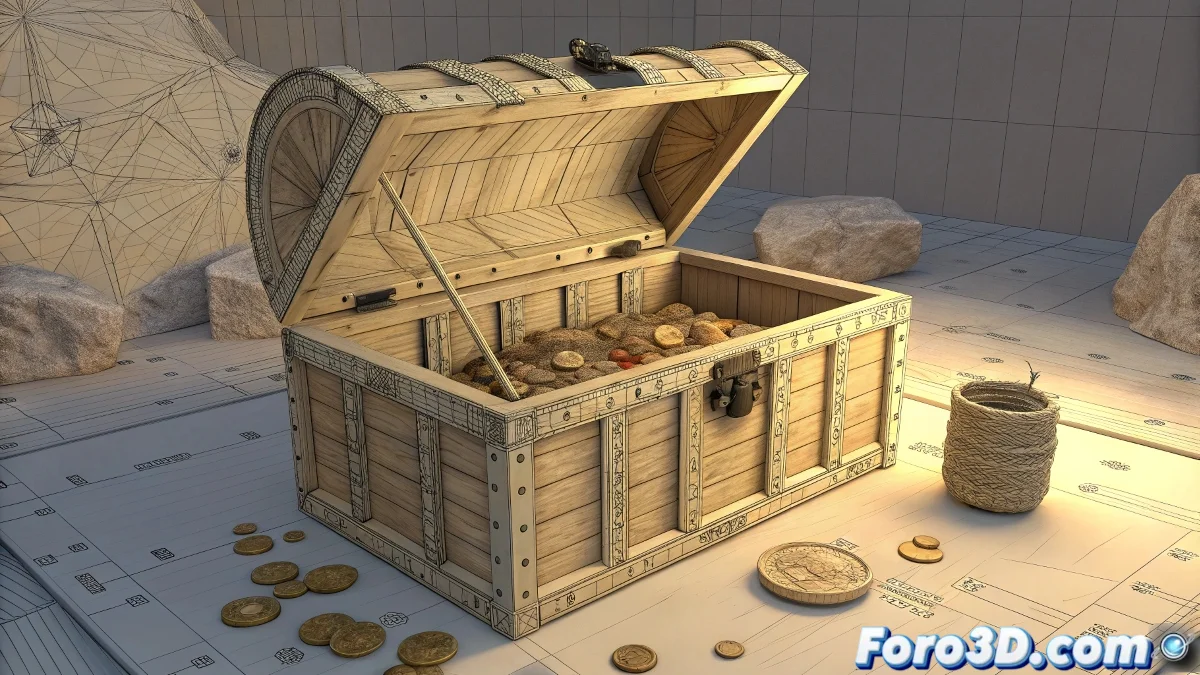 Con Blender es posible recrear el cofre del Cid con un nivel de detalle impresionante. Usando polygon modeling, se puede dar forma al cofre, incluyendo tallados, bisagras y decoraciones de época. Con textures y shaders, se simula madera envejecida, metal corroído y restos de arena en su interior. La iluminación mediante Cycles Render permite crear un ambiente medieval, destacando sombras y reflejos que resalten la antigüedad del objeto. Se pueden agregar partículas para recrear polvo o arena flotando dentro del cofre, dando una sensación más realista de abandono y misterio. Además, animation layers permiten mostrar el proceso de apertura del cofre y la interacción de la luz con su contenido, ideal para presentaciones educativas o museos virtuales.