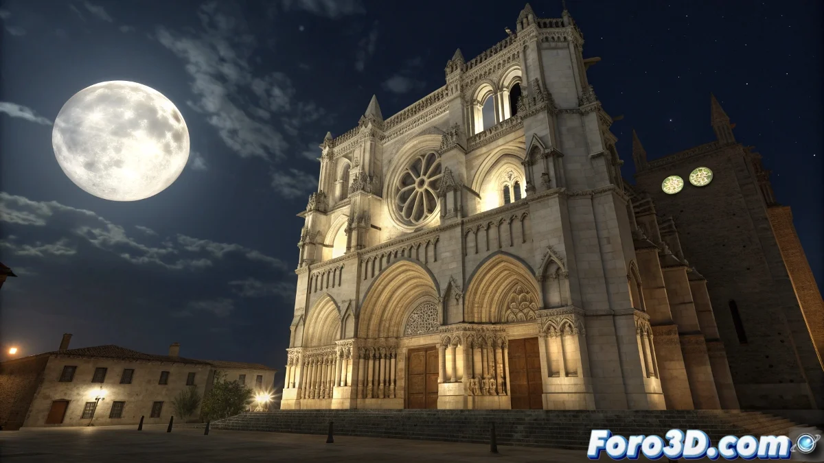 Una animación en Cinema 4D que representa el misterio de las gárgolas de la Catedral de Cuenca, combinando modelado arquitectónico, animación y efectos visuales para recrear la leyenda de los cambios nocturnos.