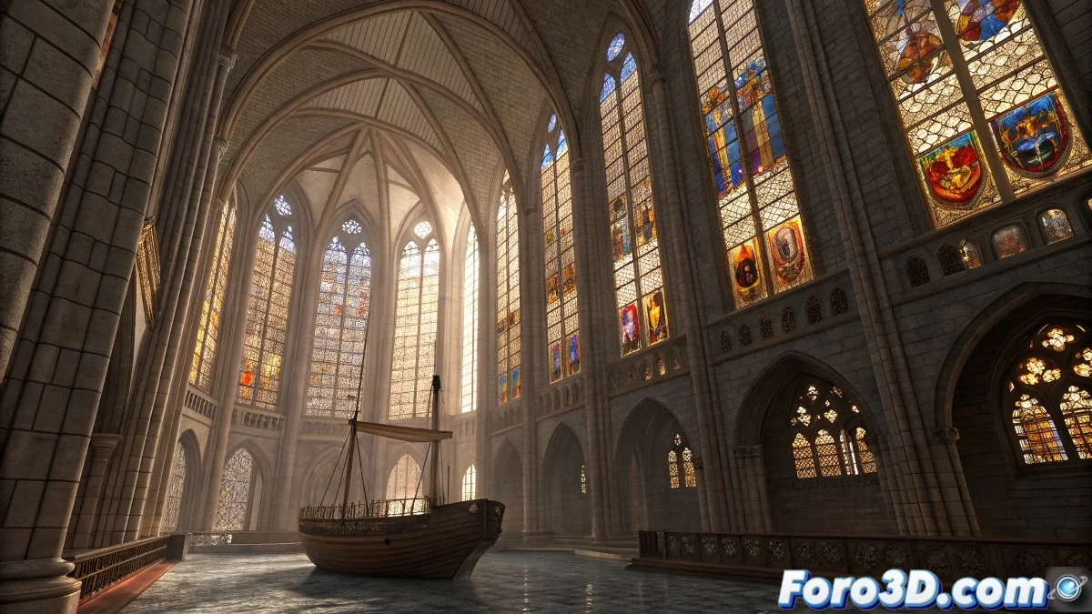 - Experimenta con luz volumétrica y sombras suaves para reforzar la atmósfera espiritual de la catedral.