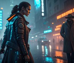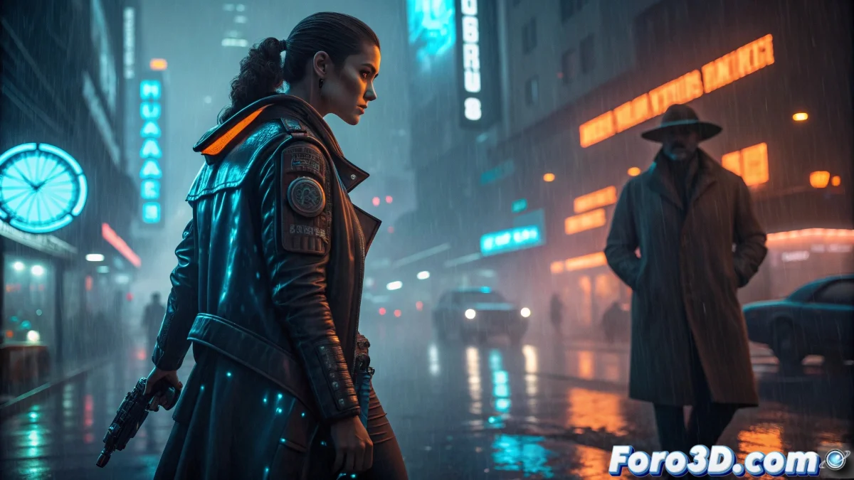 • Luces de neón y reflejos metálicos para las escenas futuristas.