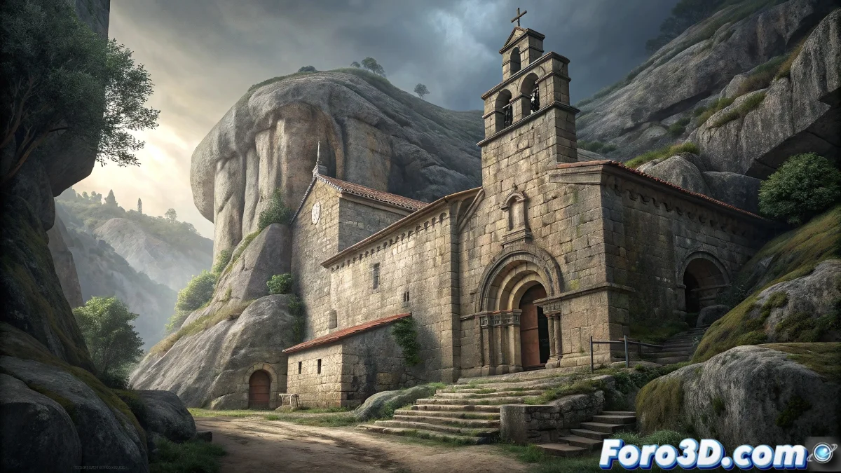 - Presenta la escena como un entorno misterioso, con la iglesia rupestre y sus enterramientos legendarios en la Ribeira Sacra.