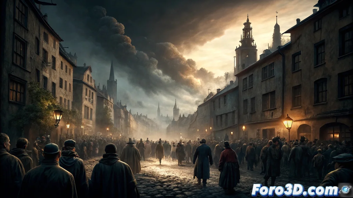 Técnicamente, si se aplicara en un contexto de 3D o animación, se podrían usar técnicas de iluminación volumétrica y texturas envejecidas para reforzar esa sensación de mundo sombrío y pesado, similar a cómo se diseñan ambientes inquietantes en cine o videojuegos.
