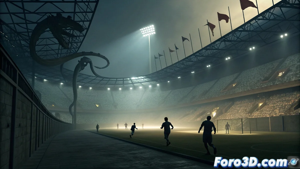 Los cuerpos de los futbolistas comienzan a experimentar cambios sutiles pero inquietantes, alargándose levemente y perdiendo su forma completamente humana. Sus sombras se independizan, replicando movimientos imposibles que desafían las leyes de la física. Cuando salen al campo para la ceremonia oficial, los focos se encienden automáticamente, iluminando un estadio donde todas las sombras se mueven en perfecta sincronía con un patrón invisible para el ojo humano común.