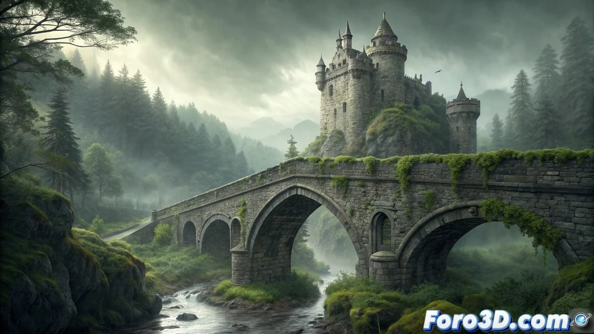 Configura un sistema de iluminación HDRI que simule el clima nublado típico de Escocia. Ajusta la temperatura de color a tonos fríos y azulados, añadiendo ligera niebla con el nodo Volumetric Scatter. Para la vegetación, utiliza el sistema de dispersión de Satori con arbustos y musgo en las bases del puente, creando ese ambiente húmedo y melancólico que caracteriza la ubicación real.
